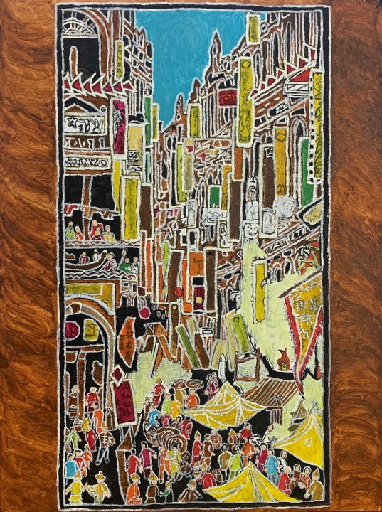 看似與所知的老街相同,但其實細看在每個招牌都有畫家自己的信仰告白,倚著黑色當底希望呈現出每個圖案的顏色與細節,細細觀看你會發現,自己正一步步走進老街當中。