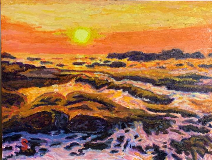 充滿希望強力的日出,瞬間將天空渲染成了美麗的橘紅,與綿延的雲山對印著,呈現出非常美麗的對比,映入眼簾的是天地間壯闊的美景。