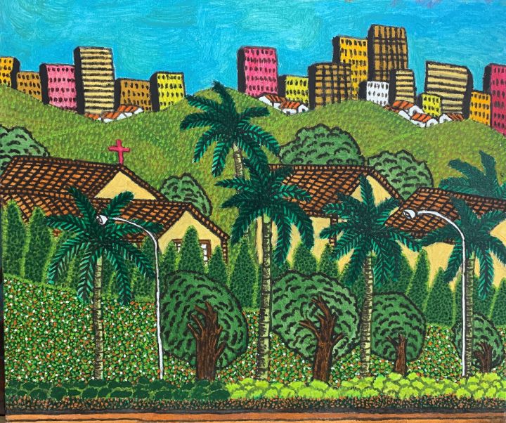 在高度開發的城市中居然有一片社區充滿綠意,感受芬多精的洗禮,聳立的樹木如同威武的旗幟,如同校園的住宅,與樹木相應。