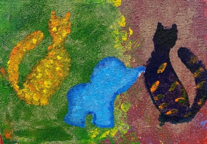 互享玩耍的貓咪跑來又跑去,突然間一隻新的的動物跑出來說:”我也想跟你們一起玩”兩隻貓貓挺胸而坐,”你是誰呢? “”好吧,讓我們一起友愛的玩耍吧!